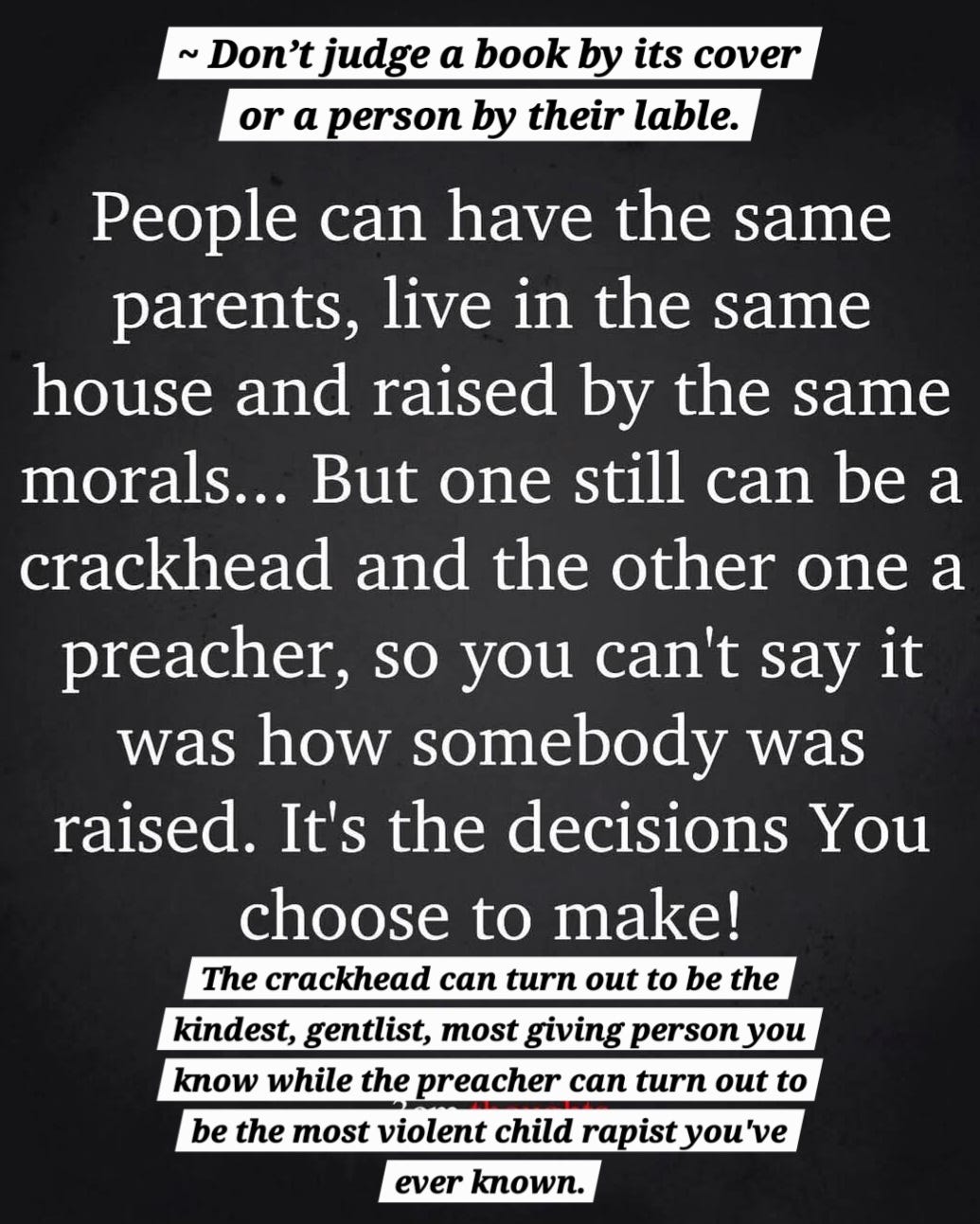 Don't judge people by their labels.